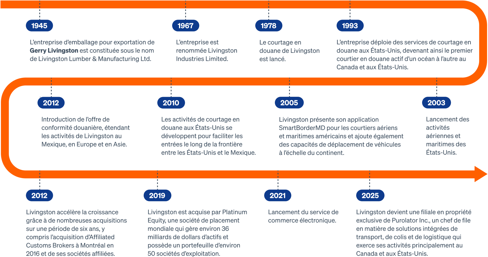 Dans le commerce mondial, tous les éléments doivent être en place pour que les marchandises puissent circuler sans heurts dans le monde entier. Livingston propose tous ces éléments. Partout dans le monde, nos clients sont assurés d’un dédouanement rapide, de conseils stratégiques, des dernières technologies, d’un service de transport fiable et, s’ils en ont besoin, d’une gestion complète du commerce mondial.